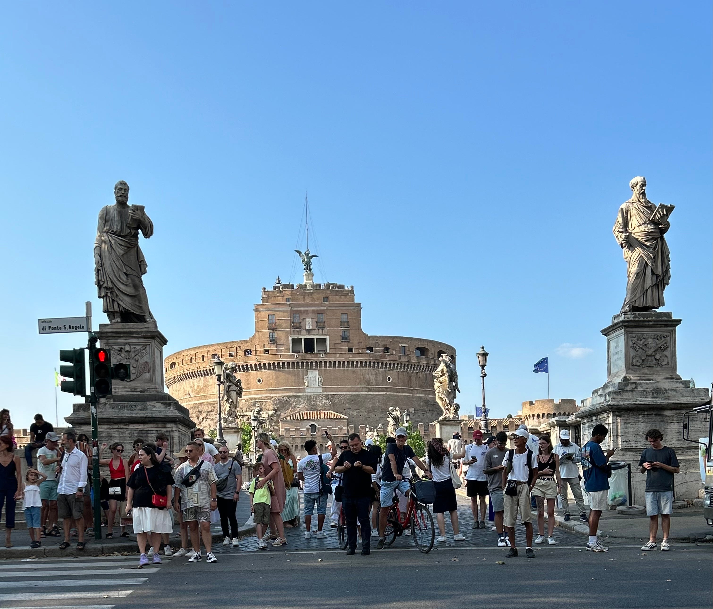 I come back and take a shower after hailing a taxi in the heat. Follow the river I told him, and he does. The Tiber is my friend as is the huge castle that looms on the left, a windowless fortress that has protected whoever needed protection for centuries. “This is good” I say, already the master of my tiny slice of Rome. A city boy is a city boy and it translates.
